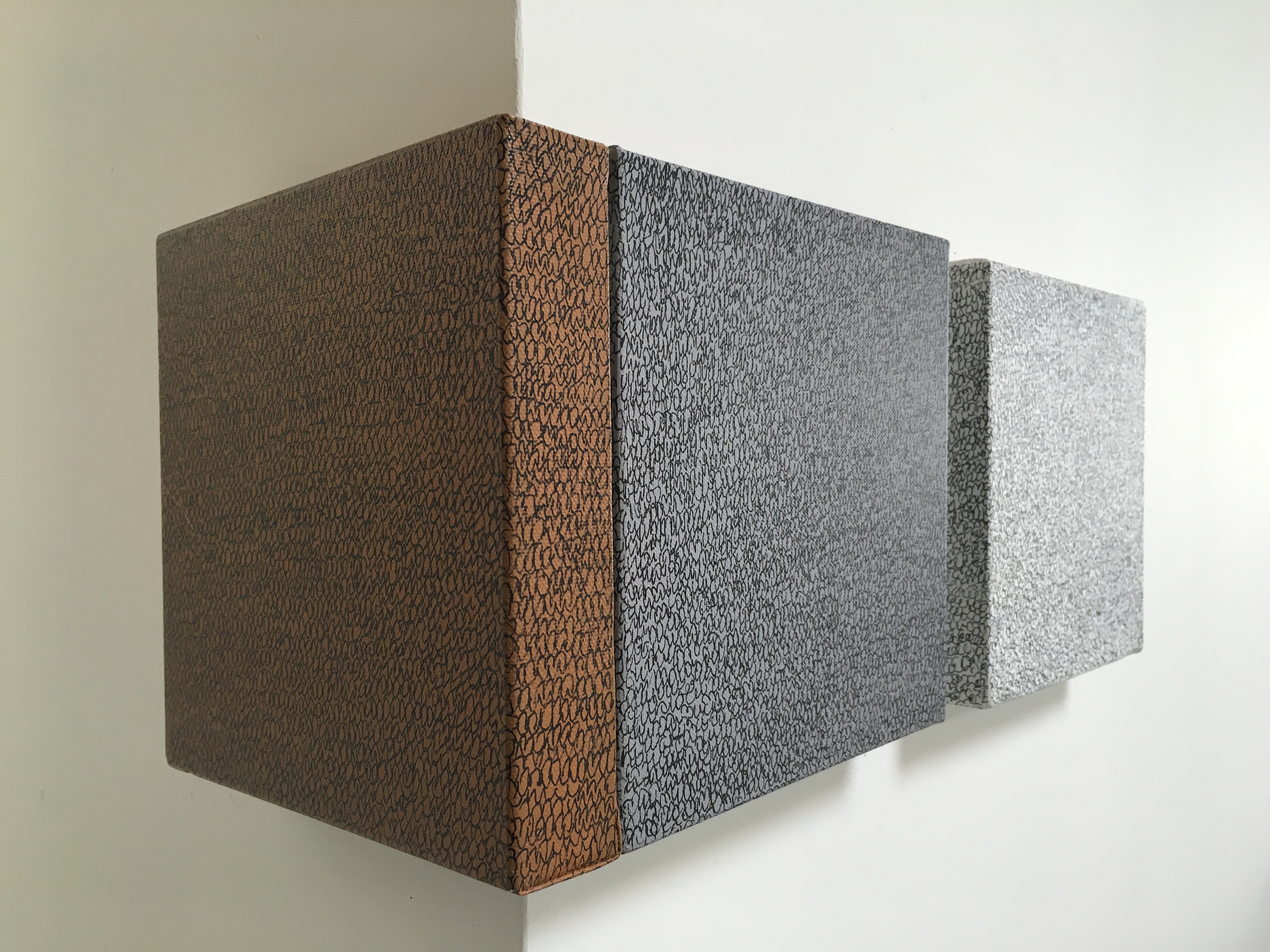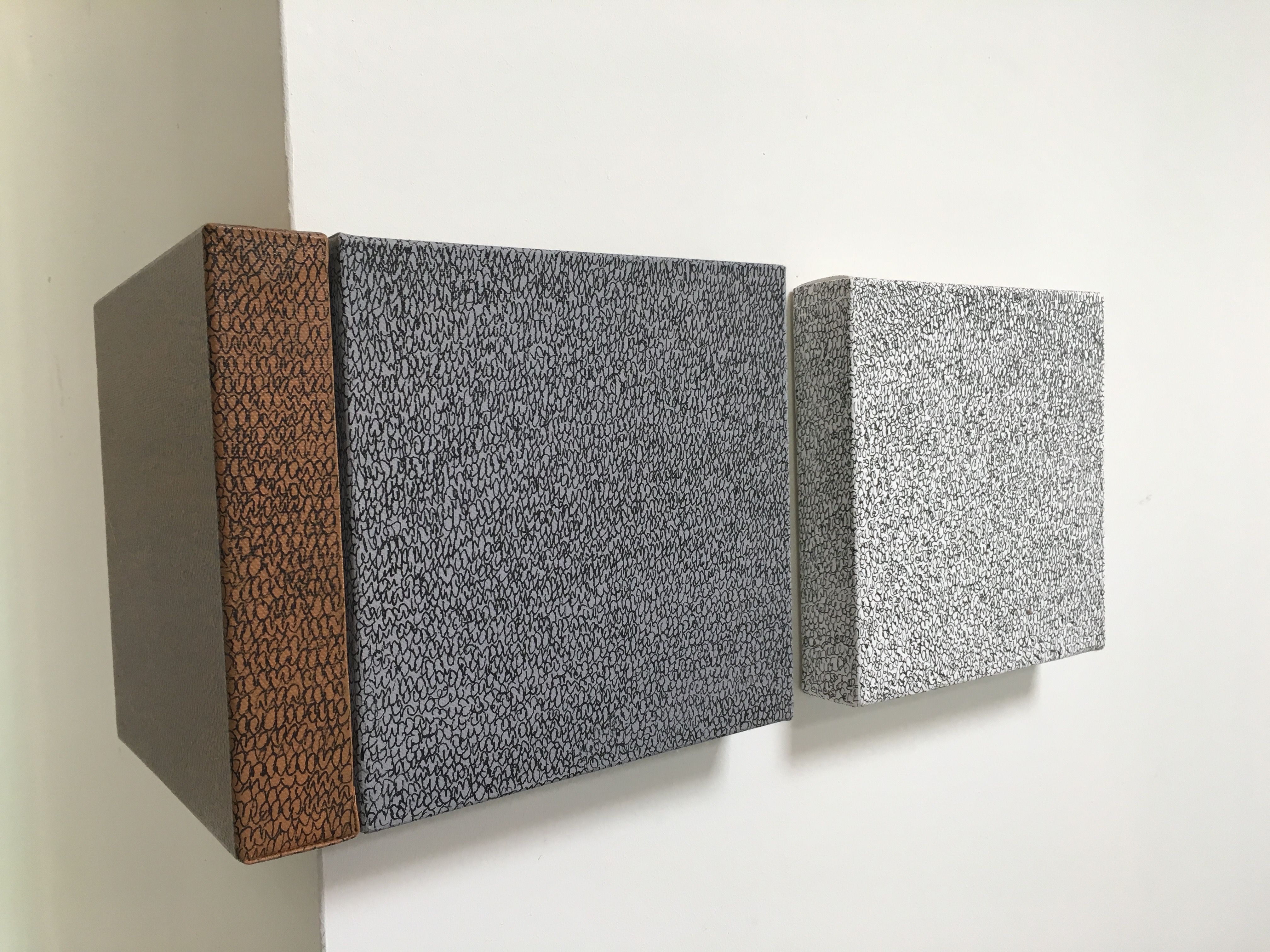 triptych canvas, acrylic paint, ink 2008200x200x40, 3x